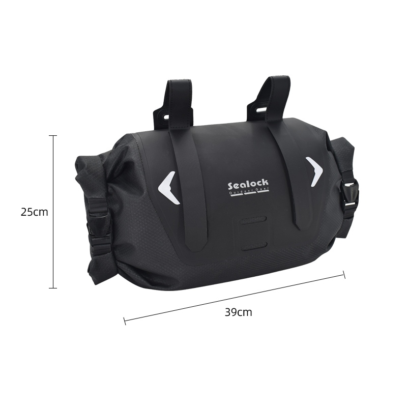 Посебан облик и надограђене каишеве Наша Сеалоцк торба за управљач бицикла водоотпорна предња торба за бицикл за планински пут има јединствени двострани склопиви дизајн, који је и леп и практичан. Унутрашња ПУ подлога има јаку отпорност на ударце и може заштитити предмете као што су телефони и новчаници у случају случајног пада. Надограђене траке су много боље него раније. Дизајнирани су да решавају проблеме са скретањем и одржавају положај торбе током вожње бициклом.